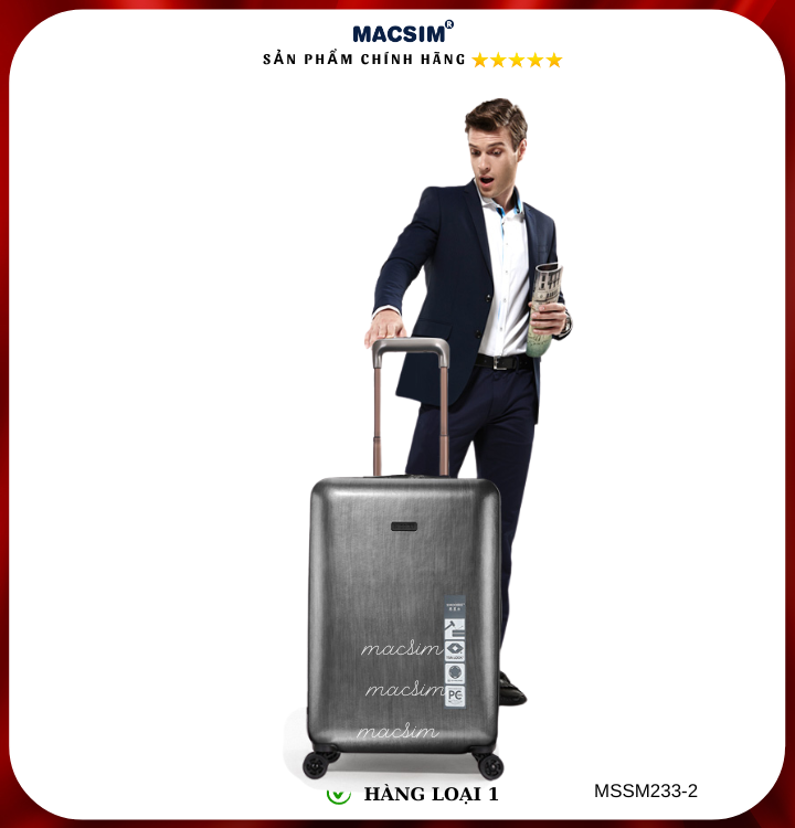 Vali Macsim được làm từ chất liệu nhựa nguyên chất PC. Tấm lót bên trong Poliester 150D xuất xứ Trung Quốc được REACH kiểm nghiệm và phê duyệt, bánh xe 360 độ hãng Hinomoto của Nhật ; Khóa kéo thương hiệu SBS xuất xứ Trung Quốc, Khóa TSA hãng Master Lock của Mỹ. Thiết kế vali đơn giản lịch lãm vô cùng sang trọng, bền bỉ, tạo dấu ấn phong cách thời trang cá nhân của bạn trên mọi cuộc hành trình. Vali cao cấp Macssim thích hợp với những người thường xuyên di chuyển cần chiếc vali nhẹ, có độ bền tốt.