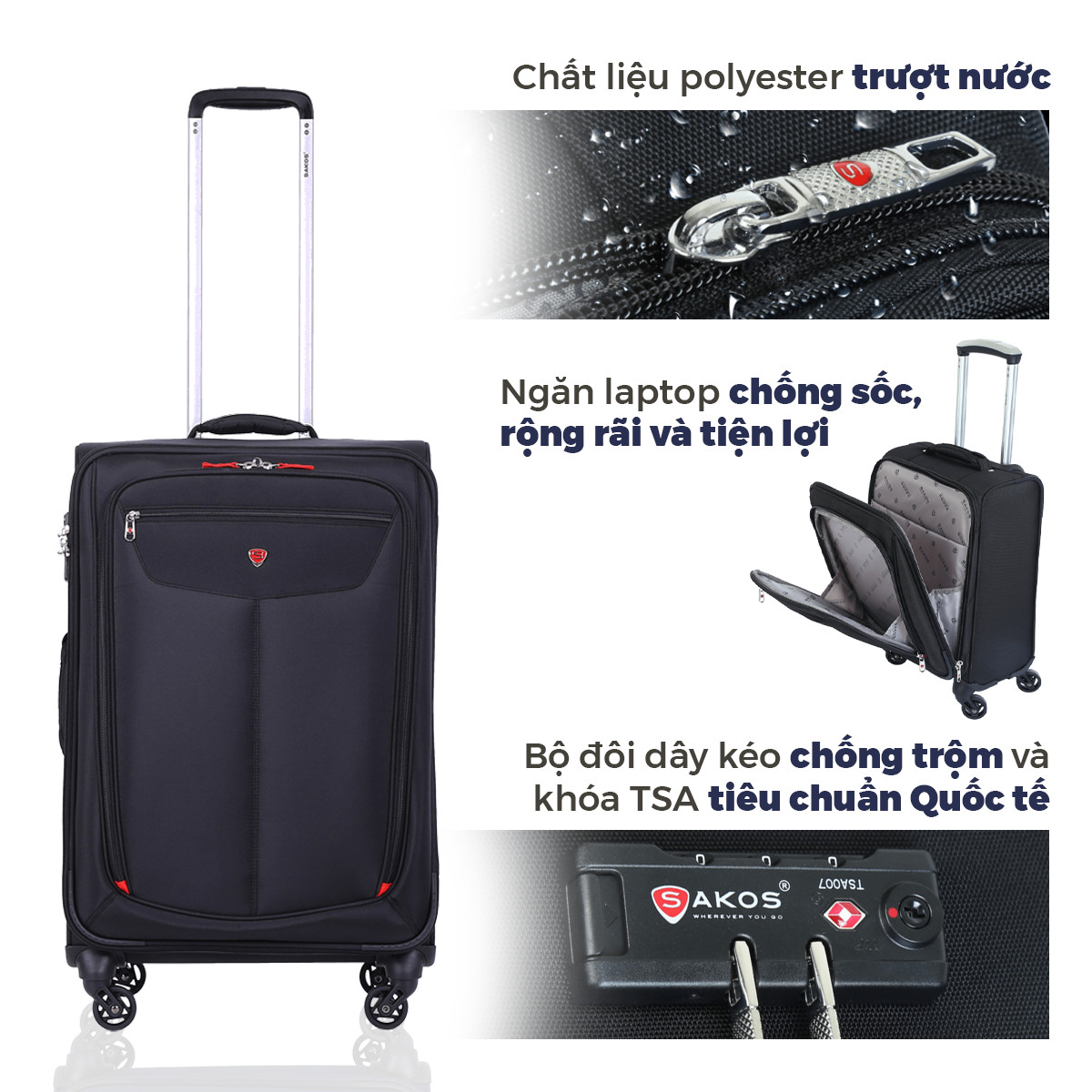 *** Vali kéo vải Sakos Elite: CHO HÀNH TRÌNH TRỞ NÊN ĐƠN GIẢN *** Elite là bộ sưu tập vali kéo vải trượt nước vượt trội từ SAKOS. Với những đặc tính ưu việt như