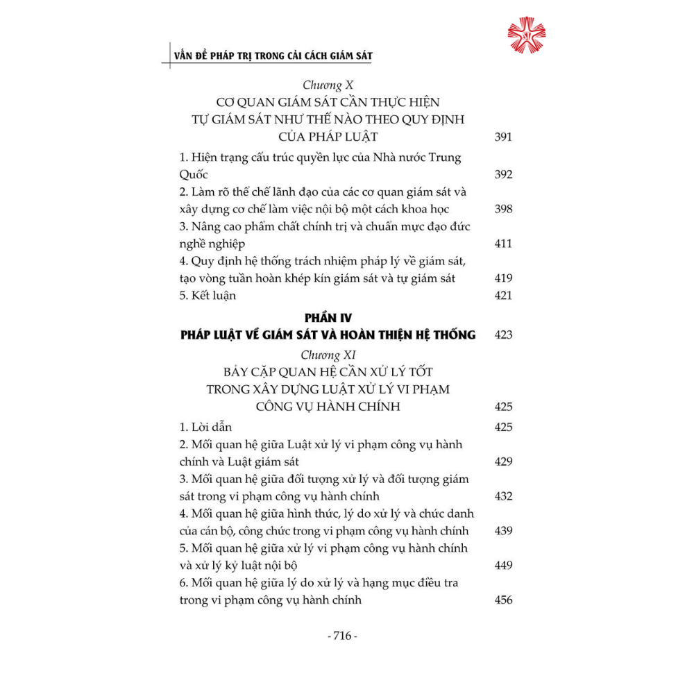 Mua tại TiktokCuốn sách được kết cấu gồm 5 phần, trình bày một cách toàn diện chế độ giám sát cũng như vấn đề xây dựng pháp luật Trung Quốc về giám sát từ hai góc độ lý luận và thực tiễn, đưa ra các giải pháp nhằm góp phần hoàn thiện thể chế giám sát của Trung Quốc. Đây là cuốn sách chuyên khảo có bố cục lôgích hoàn chỉnh và bối cảnh rõ ràng về cải cách thể chế giám sát của Trung Quốc, là tài liệu tham khảo bổ ích đối với các nhà nghiên cứu chuyên ngành luật cũng như đông đảo bạn đọc quan tâm đến chủ đề này.