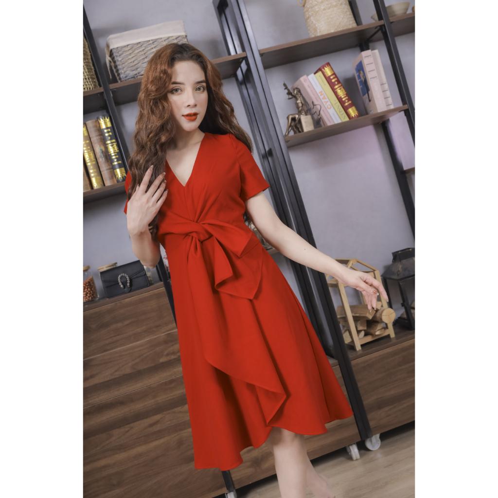 ✨Váy Chữ Chéo Eo Màu Đỏ Cao Cấp 23V039 Pi Style