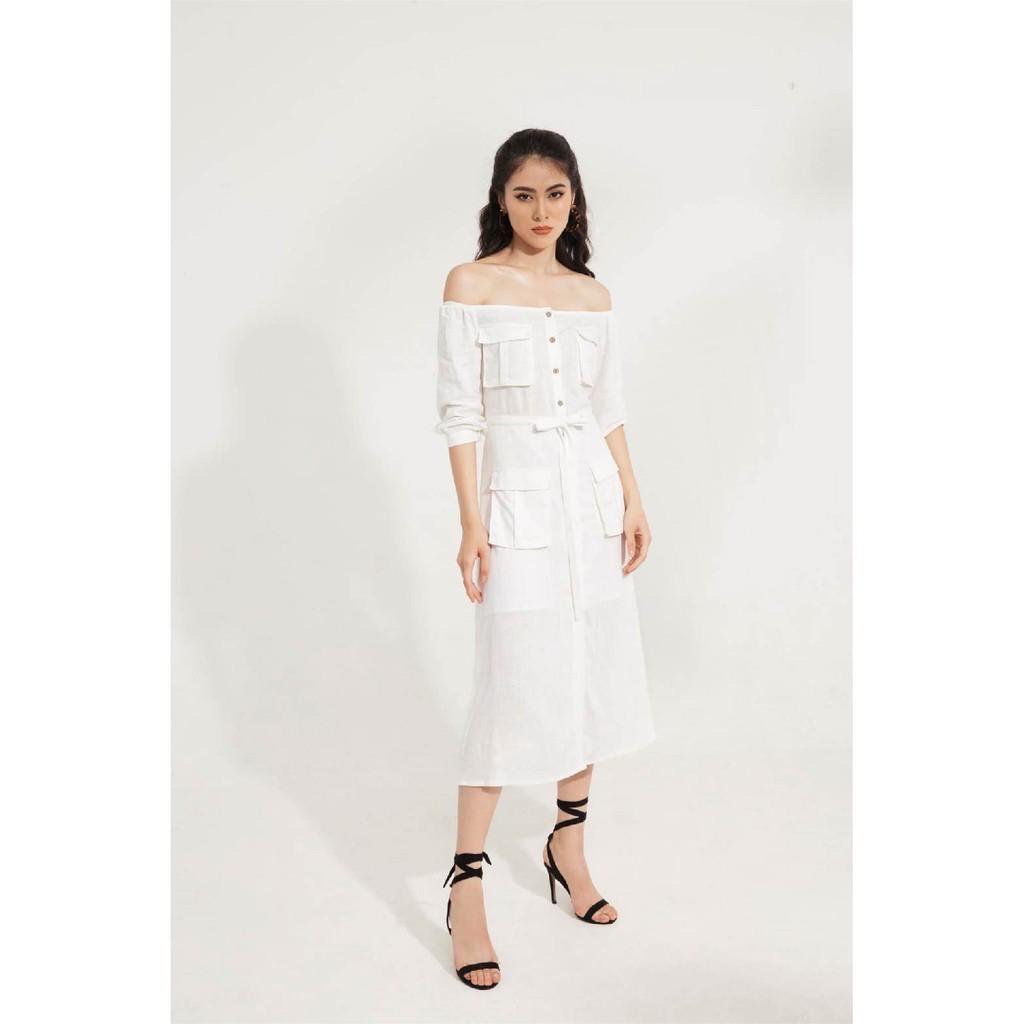 Mua tại TiktokVáy trễ vai linen cúc dừa