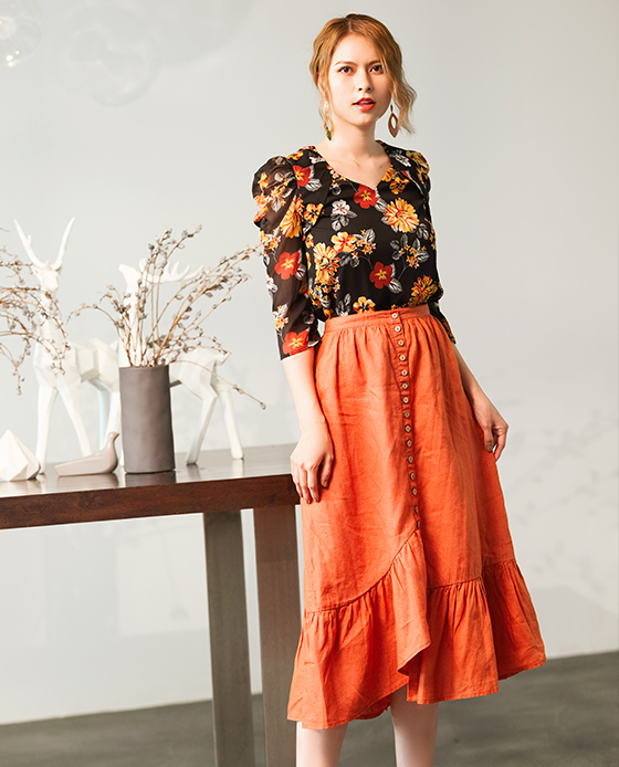 1. Mô tả INFINITY / KELSEY Chân váy bút chì, dài qua mắt cá, xẻ lượn. 2. Thông tin chi tiết Dòng hàng: Chân váy Chất liệu: Modal Màu sắc: Đen/Nâu đỏ Model: 1m73, 50kg,