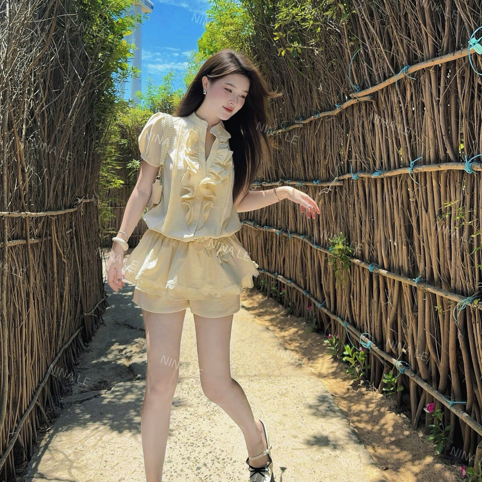 ✨Váy sơ mi vàng bèo ngực đai hoa-Đầm nữ xinh