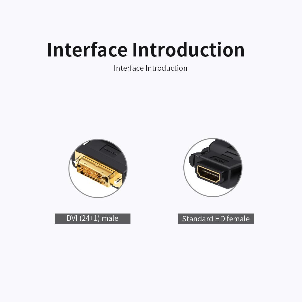 VENTION DVI to HD Adapter supports bi-directional transmission and allows you toconnect an HD display to a device with a DVIdisplay output, or display an HDsignal on a DVI monitor. 1080P high definition picture gives you excellentvisual experience.