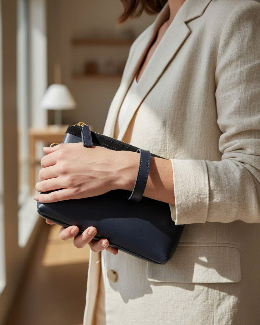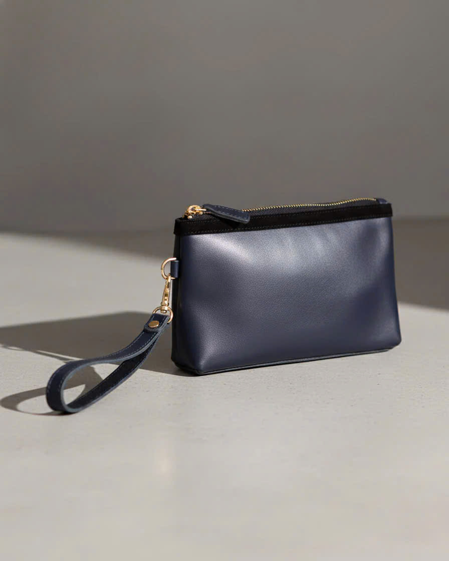 Kích thước: Chiều cao 13.0cm x Chiều ngang 21.0cm x Chiều rộng 4.0cm Ví cầm tay có dây đeo tay tháo rời được Có hai vách ngăn đựng thẻ và điện thoại Dây khóa kéo đồng cao cấp Logo ép da bên trong "Mình thực sự say mê chiếc ví này! Kích thước nhỏ gọn, kiểu dáng thanh lịch, mang đến vẻ đẹp tinh tế và sang trọng. Điều khiến mình ấn tượng nhất là nội thất bên trong vô cùng tiện lợi. Chiếc ví tuy nhỏ bé nhưng lại có sức chứa vô cùng ấn tượng, đủ để mình mang theo hộ chiếu, điện thoại, thẻ, tiền, 2 cây son, bút bi và vài vật dụng cá nhân khác. Với chiếc ví này, mình cảm thấy như cả thế giới đang nằm gọn trong tay. Mình có thể tự tin mang theo nó đi chơi, đi du lịch hay đi làm đều phù hợp. Thiết kế nhỏ gọn, thanh lịch giúp mình dễ dàng cầm nắm và mang theo bên mình. Đây quả thực là một khoản đầu tư "lợi ba": cơ động, gọn nhẹ, thời trang" - chị Nguyễn Xuân Nga, khách hàng từ Phú Mỹ Hưng, quận 7, Sài Gòn Chiếc clutch này khẳng định: phàm những vật phẩm có giá trị đích thực luôn phô bày trọn vẹn sự tỉ mỉ trong từng đường nét thủ công, đạt đến độ thẩm mỹ không thể chê vào đâu được. Được chế tác từ chất liệu da bò Ý nhập khẩu, mềm mại, dẻo dai được chọn lọc kỹ lưỡng mang lại độ mềm, dẻo dai tự nhiên và vân da độc đáo chỉ có ở da thật. Ánh sáng chiếu vào làm nổi bật độ bóng nhẹ của da, khẳng định sự khác biệt so với các sản phẩm thông thường. Cảm nhận sự sang trọng ngay từ cái chạm đầu tiên. Giá trị cốt lõi của chiếc clutch nằm ở sự thủ công tỉ mỉ. Từng đường chỉ may chắc chắn và đều đặn, thể hiện sự chính xác tuyệt đối của nghệ nhân. Đặc biệt, chi tiết da lộn (suede) phía trên không chỉ tạo điểm nhấn tương phản thú vị mà còn là minh chứng cho sự kết hợp vật liệu tinh tế. Hướng dẫn sử dụng Giặt bằng tay với nước dưới 30°C, nước giặt dịu nhẹ có độ pH trung tính không chất tẩy. Ngâm đồ từ 30-60 phút, sau đó vò nhẹ bằng tay. Xả 3 đến 4 lần nước lạnh làm sạch, sau đó nhấc đồ ra và giũ nước. hông vắt hoặc xoắn mạnh tay để tránh làm giãn vải.