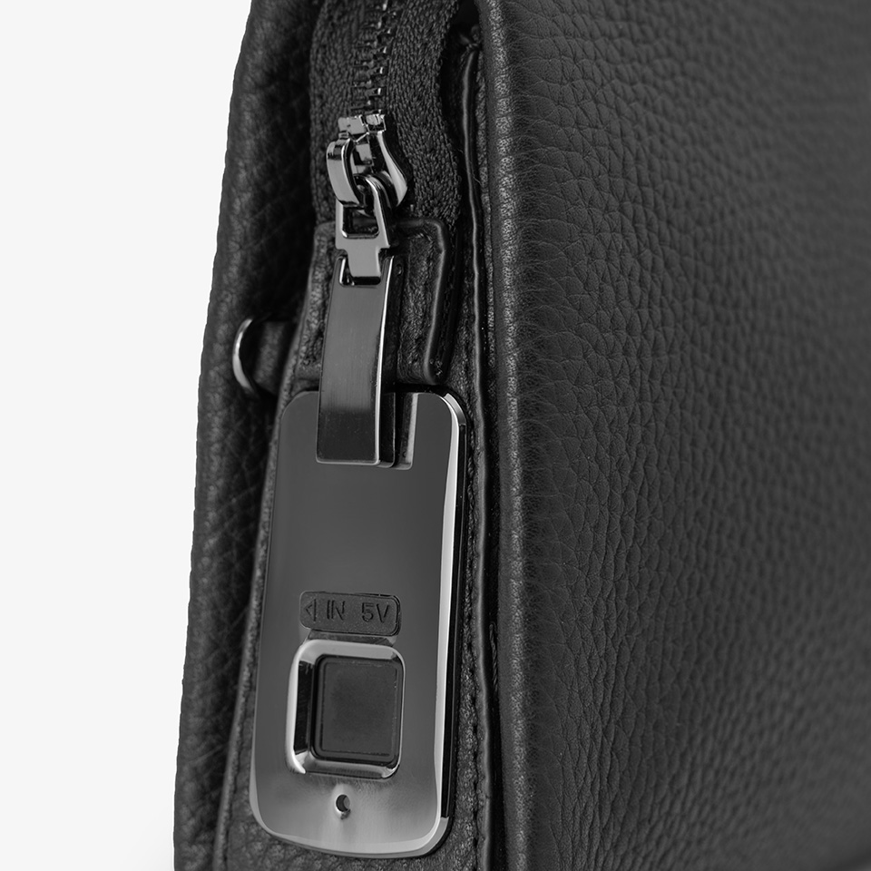 Thiết kế khóa vân tay bên hông tiện dụng và an toàn, với chất liệu da bò mềm form dáng tròn vừa tay cầm