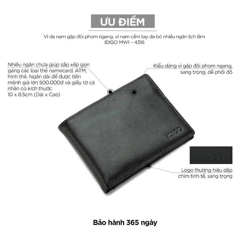 IDIGO đã cho ra mắt Ví da nam gập đôi phom ngang, ví nam cầm tay da thật nhiều ngăn lịch lãm IDIGO MW1-4318 được thiết kế với kiểu da thật mềm mại trên nền màu sắc trung tính đảm bảo tính thanh lịch và tiện ích cho chàng.
