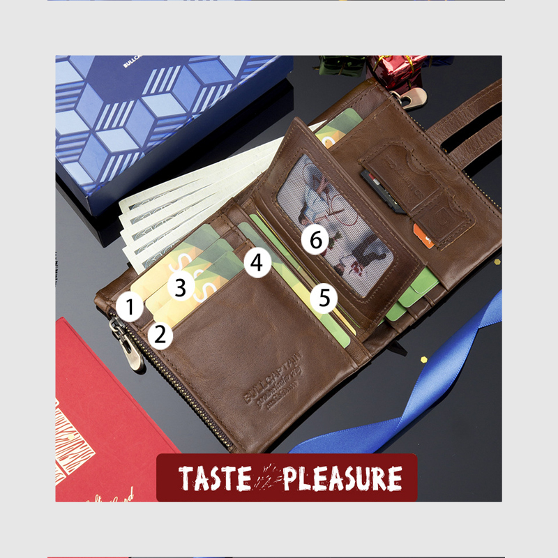 - Ví nam được làm bằng chất liệu da bò cao cấp tạo kiểu dáng lạ mắt, sang trọng. - Thiết kế nhỏ gọn, thời trang, dạng ví nam xếp đôi, có nhiều ngăn tiện