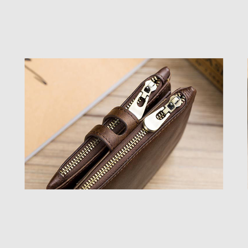 Ví đứng da bò thật 100% mẫu ví màu nâu sang trọng tại Leather20