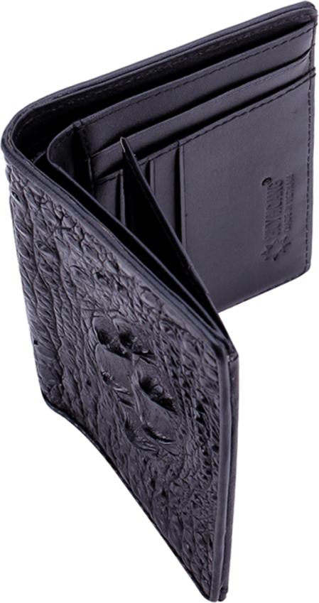 Ví da cá sấu nam 2 mặt nguyên con màu đen Hoàng Long