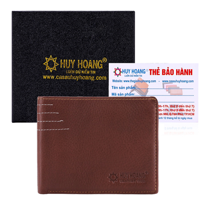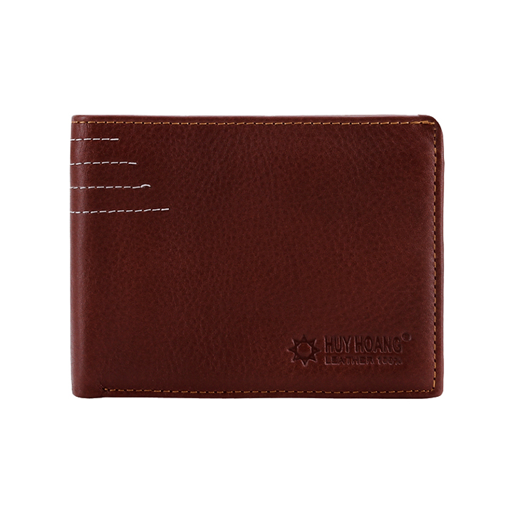 Ví/Bóp nam Huy Hoàng da bò viền chỉ màu nâu 2130