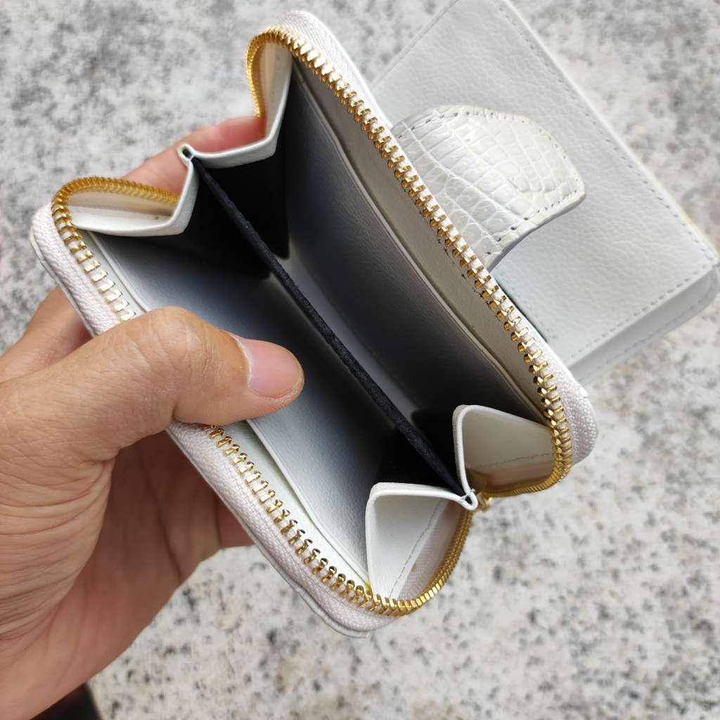✨Ví nữ cầm tay nhiều ngăn Da bụng cá sấu bạch tạng!
