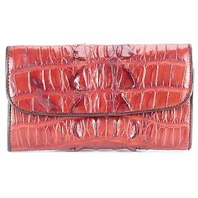 Ví da cá sấu cầm tay 2 ngăn khoá kéo | Ví cầm tay màu nâu đỏ