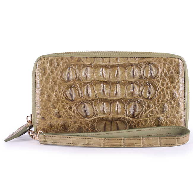Ví da cá sấu cầm tay 2 ngăn khoá kéo | Ví cầm tay màu nâu đỏ