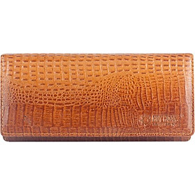 Ví/Bóp nữ Huy Hoàng da bò vân cá sấu 2 gấp màu vàng bò 3104
