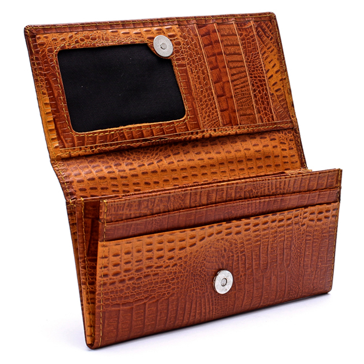 Ví/Bóp nữ Huy Hoàng da bò vân cá sấu 2 gấp màu da 3101