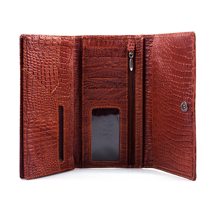 Ví/Bóp nữ Huy Hoàng da bò vân cá sấu 2 gấp màu nâu 3103