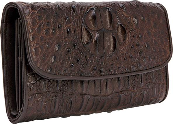 Ví/Bóp nữ da bò vân cá sấu Huy Hoàng 2 gấp màu nâu 3117