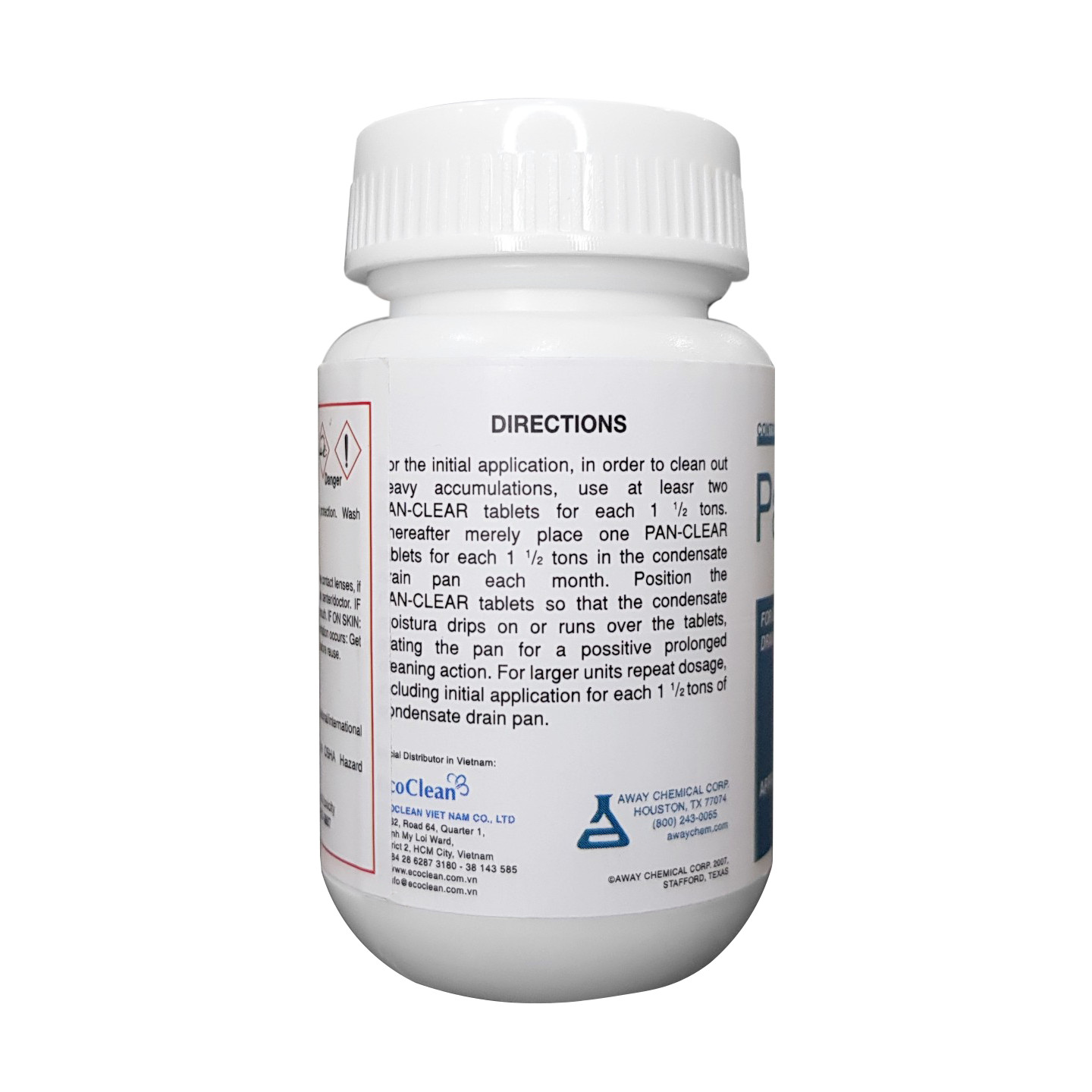 Pan Clear làm sạch tức thì bùn, cáu cặn, vôi rửa và các chất tích tụ khác trong đường ống thoát nước ngưng và cải thiệt triệt để các vấn đề bảo trì bổ sung do tràn khay nước ngưng máy điều hòa ngưng tụ nước, hay mùi hôi nấm mốc do lâu ngày không vệ sinh. ️