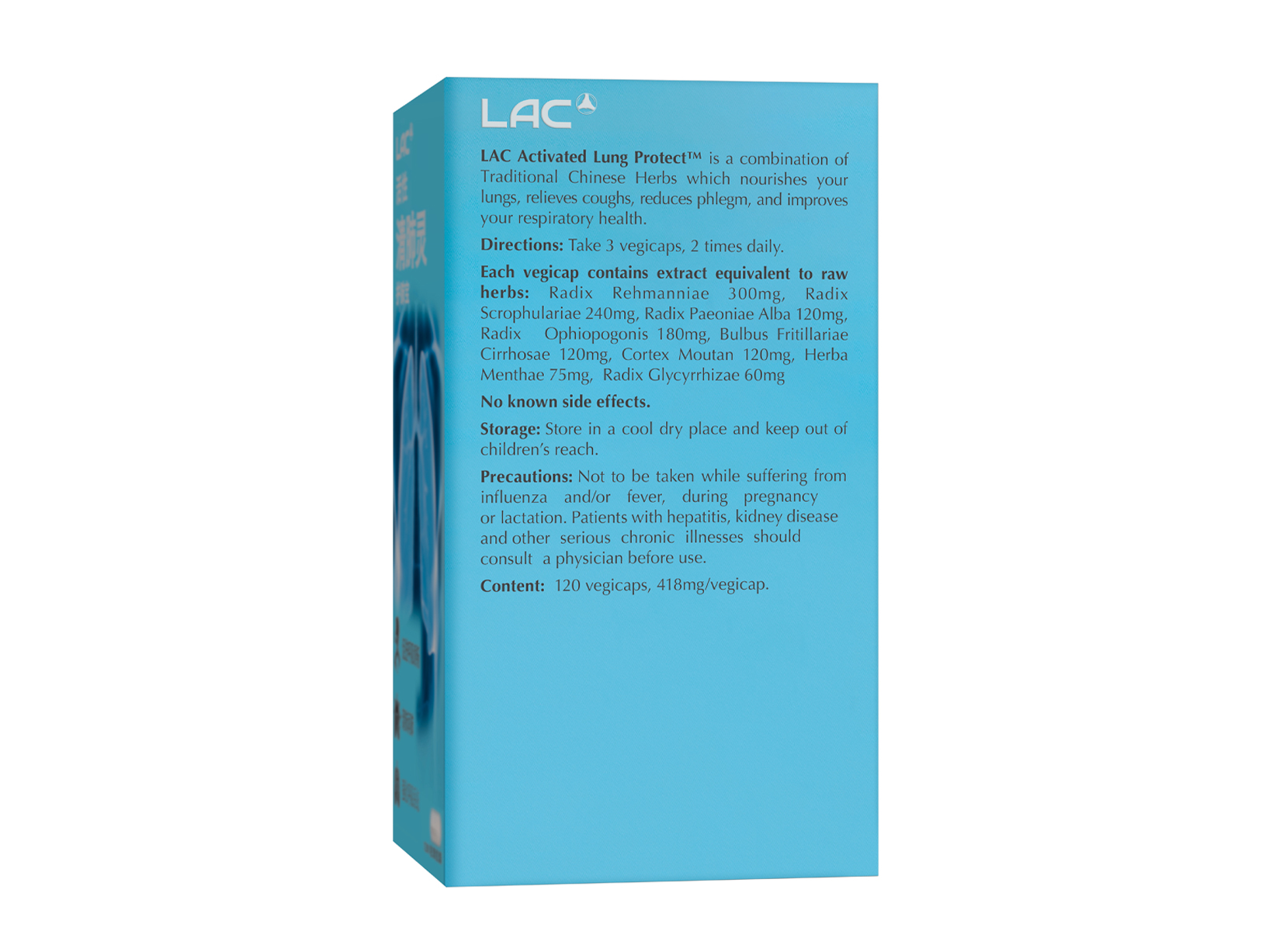VIÊN UỐNG BẢO VỆ PHỔI VÀ TĂNG CƯỜNG HÔ HẤP LAC ACTIVATED LUNG PROTECT (120 VIÊN) là sự kết hợp hoàn hảo của 8 loại thảo dược y học cổ truyền Trung Quốc, giúp bảo