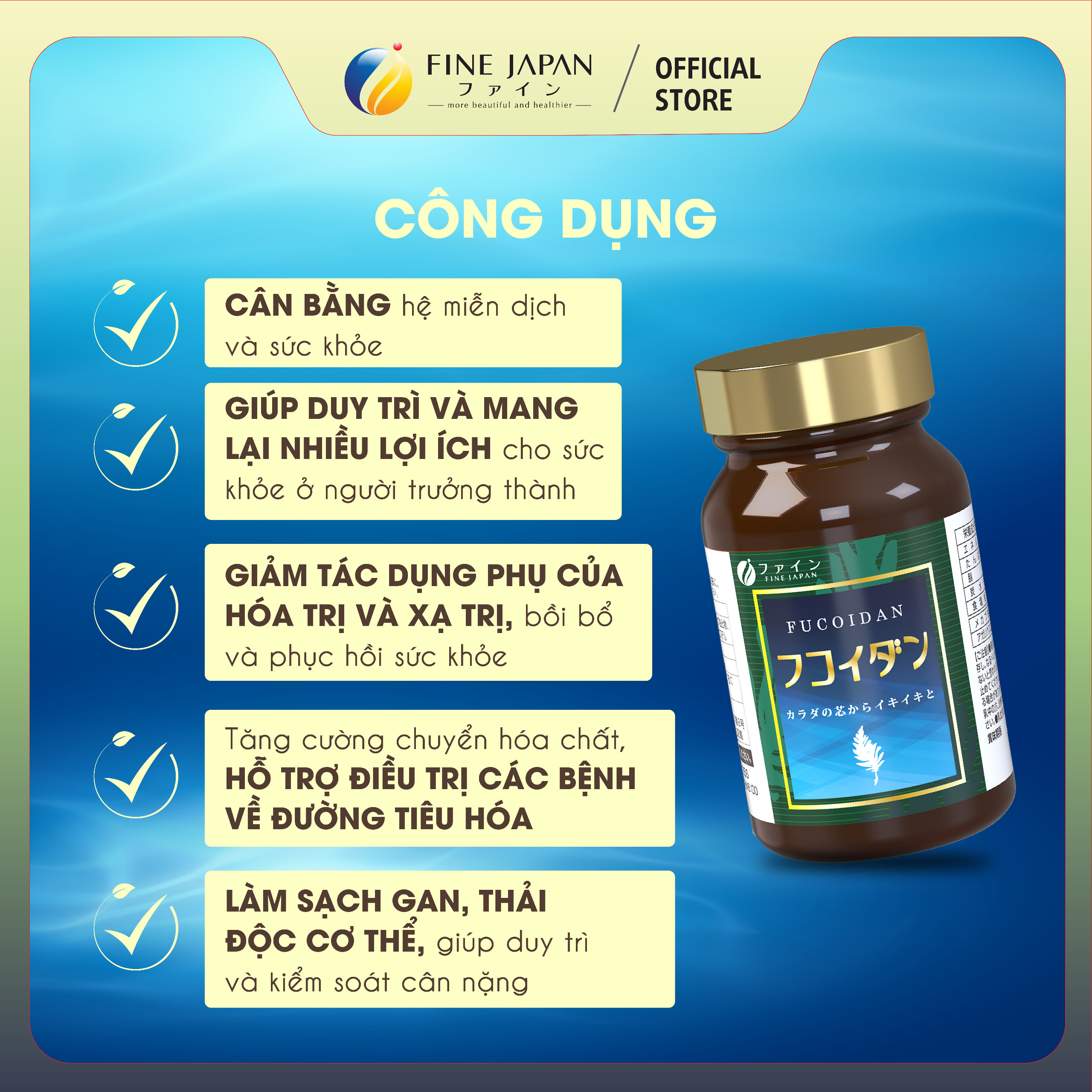 ► Viên Uống Cân Bằng Hệ Miễn Dịch Và Sức Khỏe FUCOIDAN FINE JAPAN Hộp 198 Viên ● Fucoidan là một chuỗi phân tử Polysaccharide đặc biệt là chất nhờn có trong tảo với