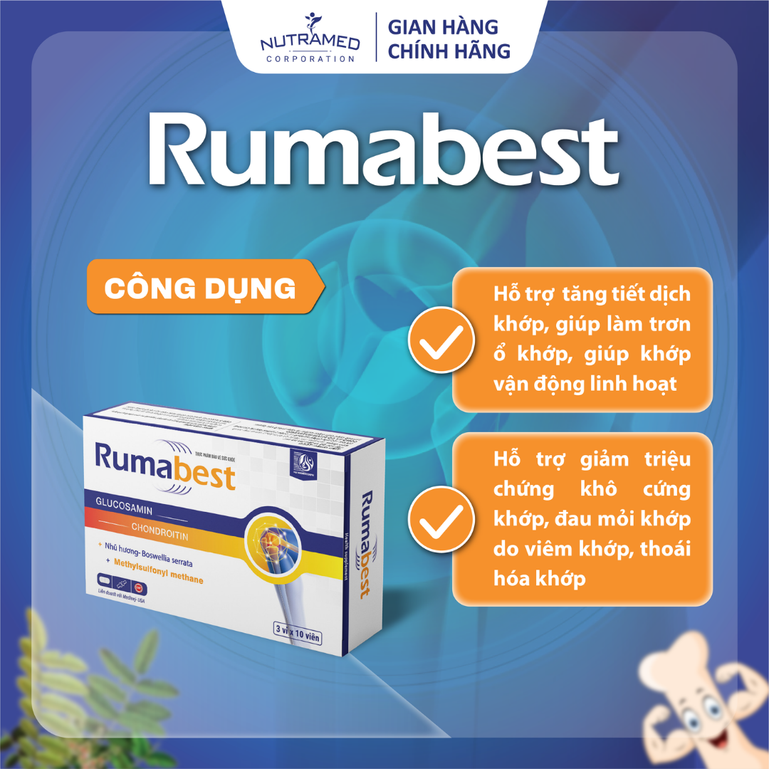 RUMABEST - Hỗ trợ tăng tiết dịch khớp. Giảm khô cứng khớp. Đau mỏi khớp. Do viêm khớp, thoái hóa khớp