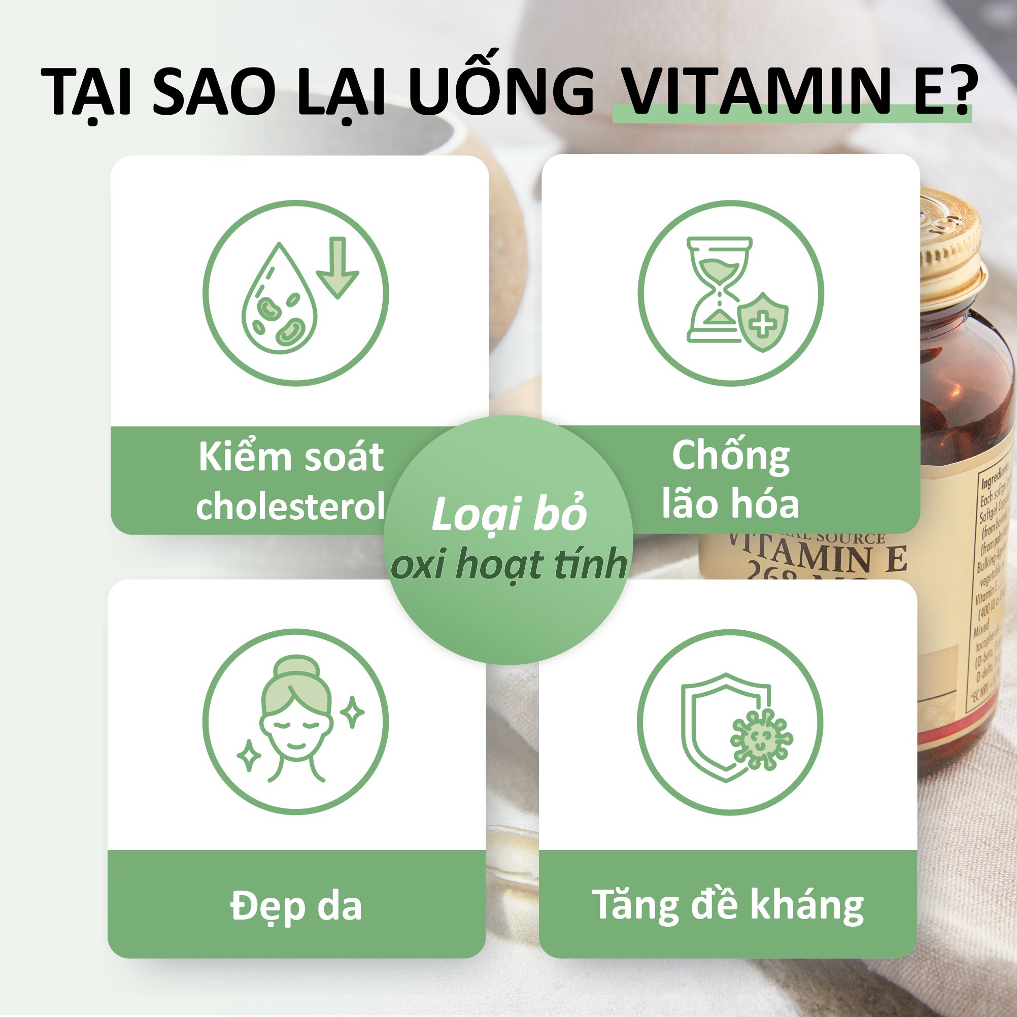 Giữ mãi tuổi đôi mươi với Solgar Vitamin E ngăn ngừa lão hoá
