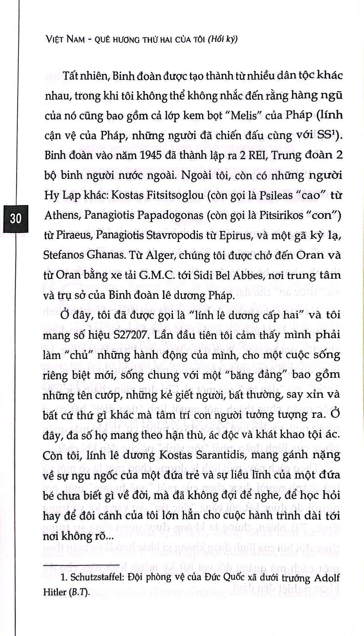 Nội dung cuốn sách được xây dựng dựa trên cơ sở tư liệu hồi ức, nhật ký của Anh hùng Lực lượng vũ trang nhân dân Việt Nam Kostas Sarantidis - Nguyễn Văn Lập. Là người có “một cuộc đời vô cùng thú vị và đầy phiêu lưu”, những câu chuyện, lời kể của Kostas Sarantidis đã được Hội những người Hy Lạp ở nước ngoài ghi chép, lưu giữ lại, bởi “những trải nghiệm này của ông, có lẽ là duy nhất trên thế giới”.