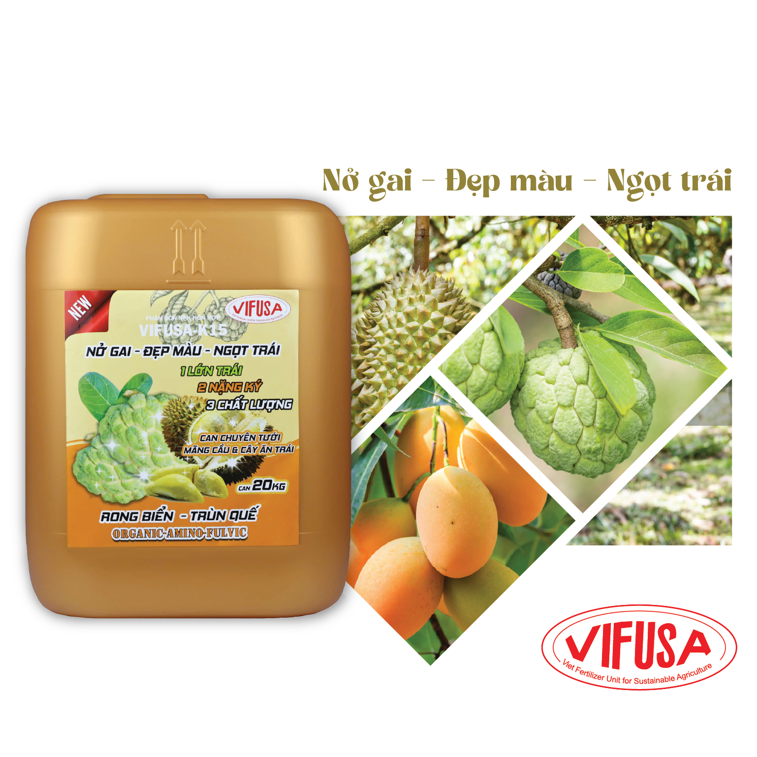 - Cung cấp đầy đủ các chất dinh dưỡng cho cây trồng trong giai đoạn nuôi trái. - Giúp trái lớn nhanh, mẫu mã đẹp. - Cuống trái to, dẻo dai, trái bóng đẹp, nặng