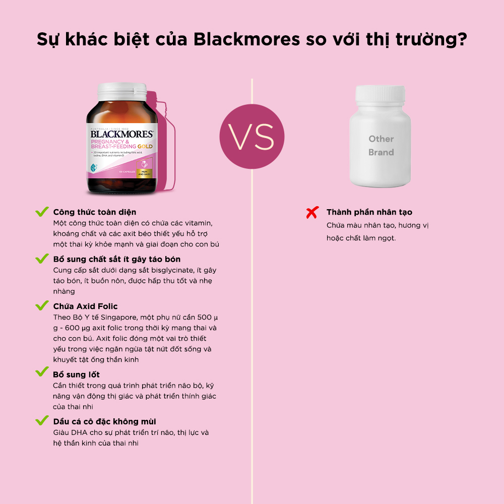 Vitamin Tổng Hợp Cho Bà Bầu và Mẹ Cho Con Bú Blackmores Pregnancy & Breast-Feeding Gold được điều chế để hỗ trợ thai kỳ khỏe mạnh hơn cho cả mẹ và bé. Chứa 20 chất