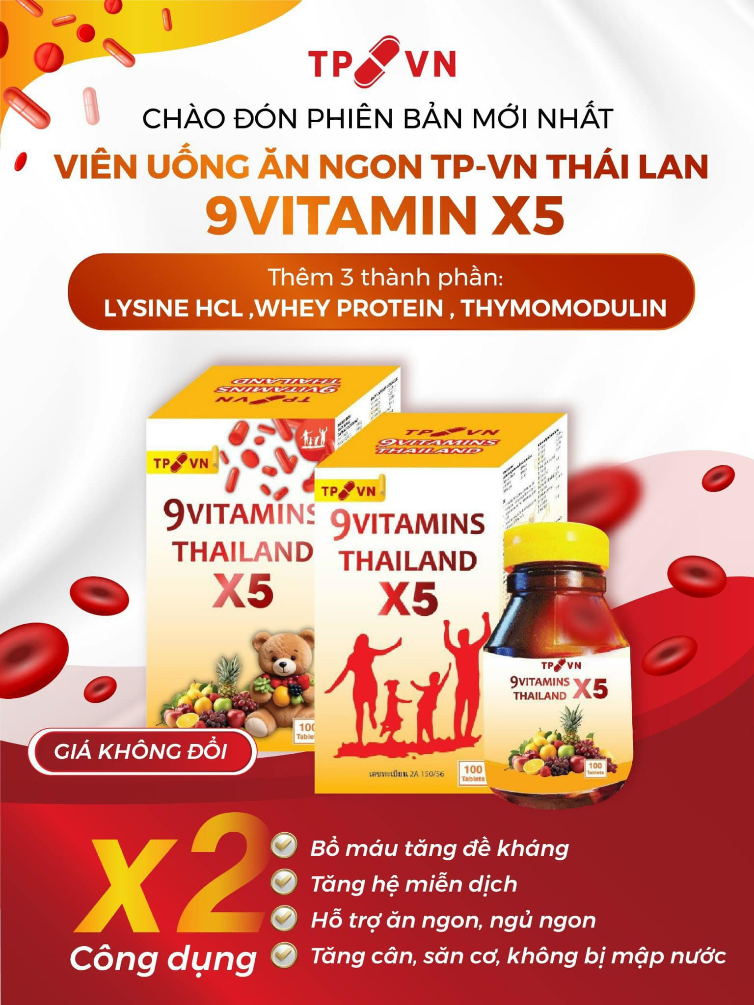 Viên uống Vitamin TP X5 Thái Lan - 100 viên, mẫu mới, date mới - Tăng 2-4 kg / tháng - Dùng cho người từ 3 - 60 tuổi, phụ nữ sau sinh 6 tháng