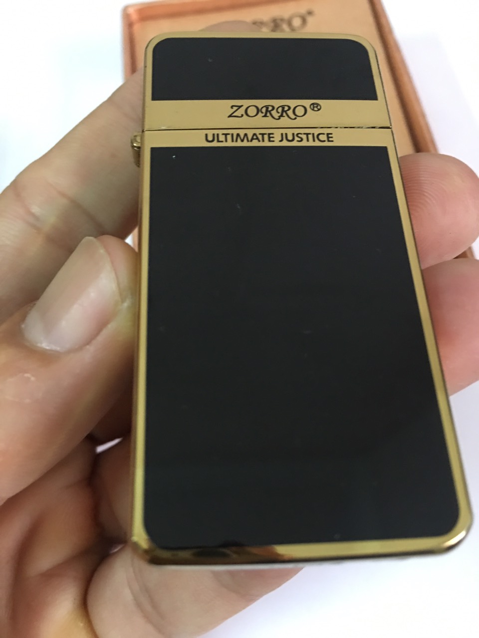 Hộp quẹt bật lửa xăng đá siêu mỏng Zorro ZC5 sơn mài đen viền vàng #batluadocla #batluadep #zorro