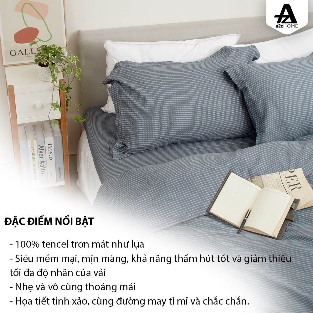 Mua tại TiktokVỏ Mền Little Stripes Mềm Mại 100% Tencel Cao Cấp A2Z Home Little Stripes những dải sọc nhuyễn mang gam màu xám đen mạnh mẽ, vô cùng cá tính và trẻ trung. Hãy cùng A2Z Home đón mùa của nắng, dịu dàng mà gay gắt, rực rỡ như đang căng hết sức lực để làm bừng sáng không gian phòng ngủ qua bộ sưu tập Summer. Mát như kem, mềm như lụa là những đặc điểm nổi bật của dòng sản phẩm Tencel khiến cho bao nhiêu người mê mẩn. CHẤT LIỆU SẢN PHẨM