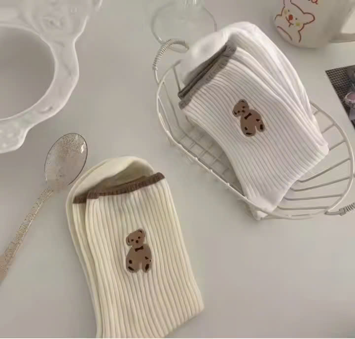 ✨Vớ Nữ Hình Gấu Nhiều Màu ( Bọc 10 Đôi ) Loại Cổ Cao