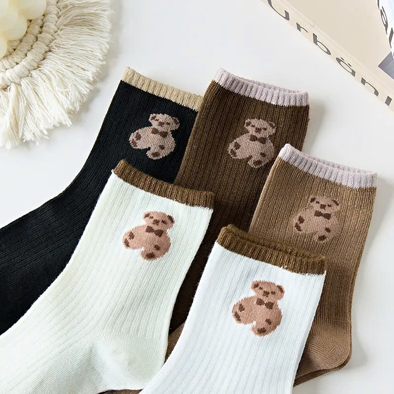 Set 5 đôi tất vớ nữ cổ cao GOMTAT mẫu hình gấu cao cấp
