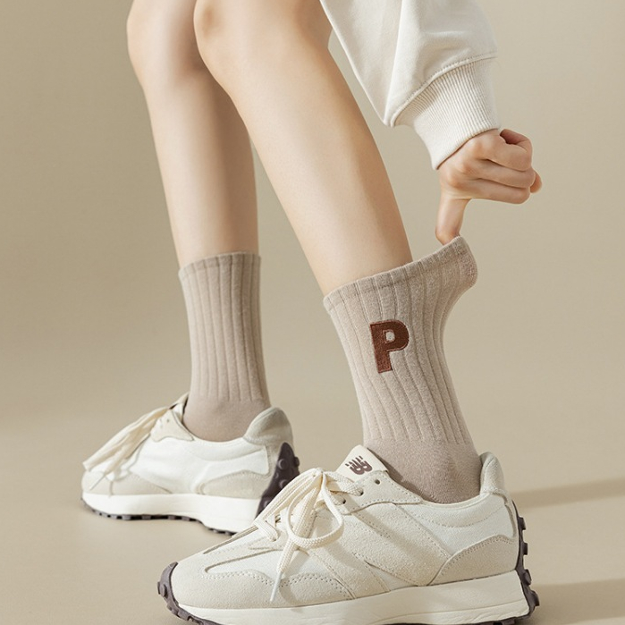 MÔ TẢ SẢN PHẨM Tất cổ cao nữ họa tiết chứ P cá tính - Vớ nữ cotton gân tăm mềm mại co giãn 4 chiều MÔ TẢ SẢN PHẨM - Màu: Đen, Trắng, Xám,