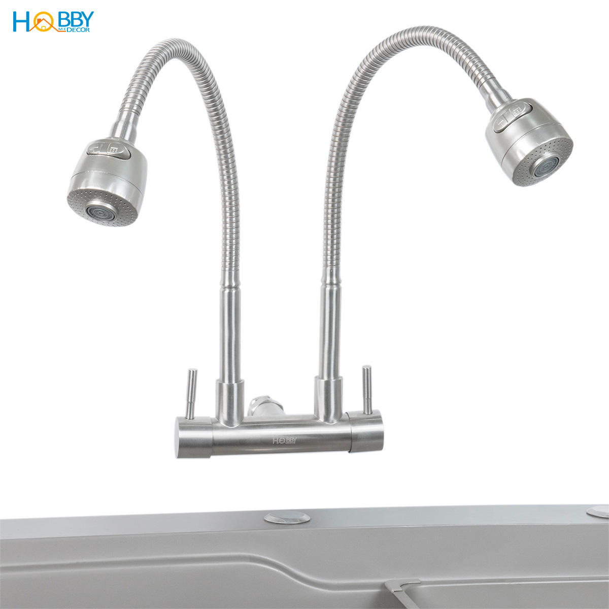 Mua tại TiktokVòi rửa chén gắn tường 2 đầu xả tăng áp inox 304 Hobby home decor G2T
