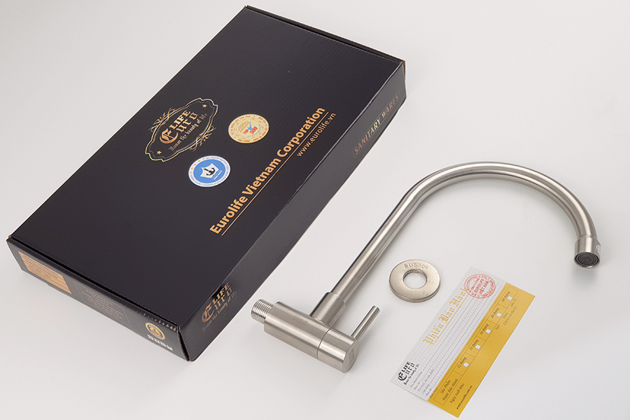 Vòi rửa chén lạnh Inox SUS 304 Eurolife được đúc trọng lực từ INOX SUS 304, không Chì (Pb) lên đảm bảo cho sức khỏe người sử dụng. Sản phẩm không rỉ sét trong thời gian dài sử dụng.