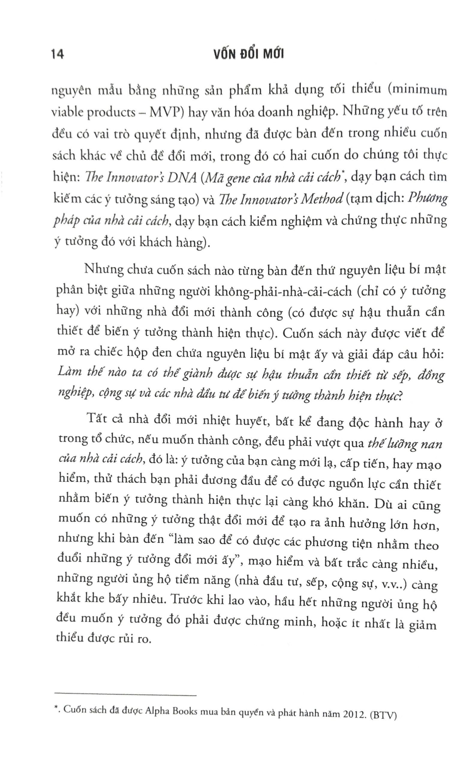 Các chuyên gia đổi mới Jeff Dyer, Nathan Furr và Curtis Lefrandt tiết lộ thành phần quan trọng – vốn đổi mới – giải thích lý do tại sao ý tưởng của bạn giành được các nguồn lực và sự hỗ trợ; hoặc tại sao bạn gặp khó khăn, đồng thời chỉ cho bạn cách đạt được, khuếch đại, cũng như sử dụng chúng để thành công với tư cách là một nhà lãnh đạo sáng tạo.