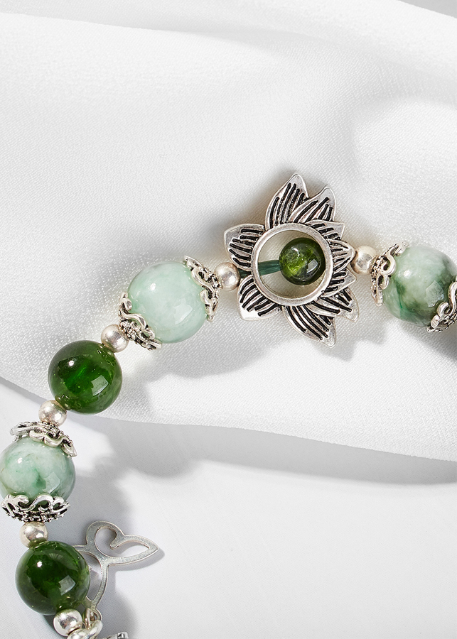 Vòng cẩm thạch phỉ thúy phối diopside và charm Hoa bạc Ngọc Quý GemstonesVòng cẩm thạch phỉ thúy phối diopside và charm Hoa bạc Ngọc Quý Gemstones