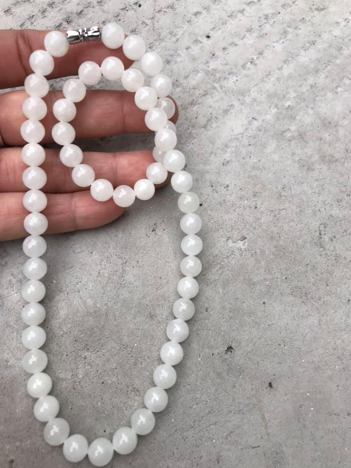 ✨Vòng Chuỗi Đeo Cổ Đẹp Mới Đá Ngọc Hoà Điền Tự Nhiên Size 8mm Màu Trắng Ngọc Đẹp Nữ mệnh Kim mệnh Thủy ạ