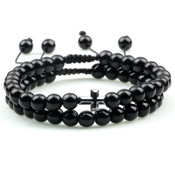 Chuỗi hạt đá đen Chuỗi Mân Côi vòng hạt đá Thánh giá bạc Đức Mẹ kết hạt tấm