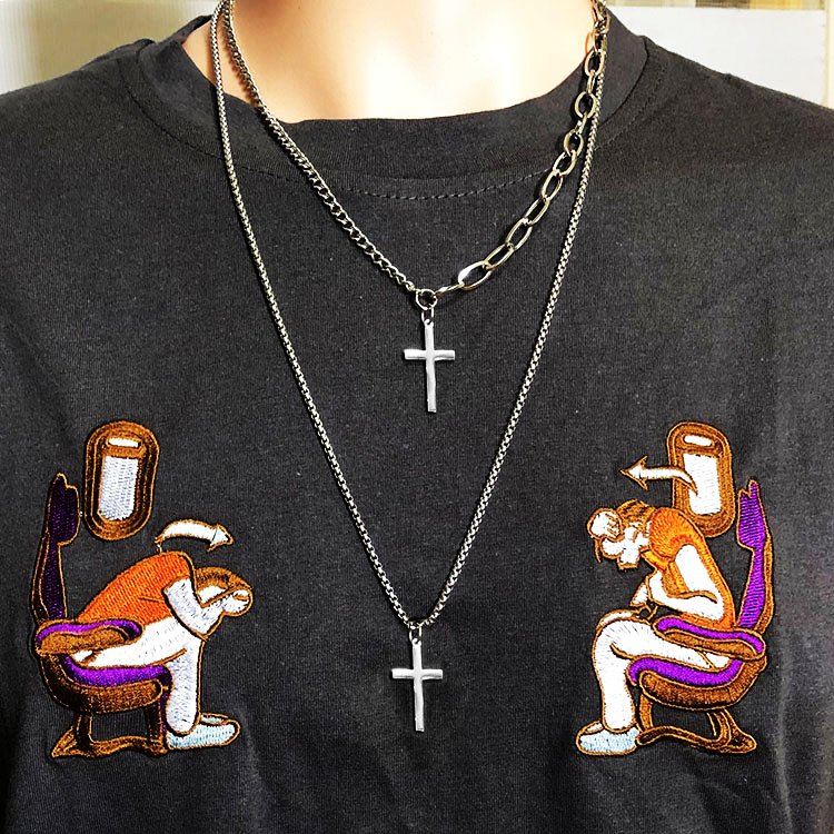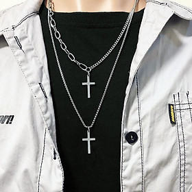 ✨Vòng cổ hip hop chữ thập kép nam nữ phụ kiện thời trang đường phố cá tính