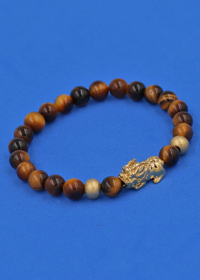 Vòng đá mắt hổ vàng nâu được làm từ đá mắt hổ vàng nâu, đây là loại biến thể phổ biến nhất trong tự nhiên. Màu nâu vàng trong phong thủy ngũ hành thuộc hành Thổ. Vì vậy, vòng đá mắt hổ vàng nâu hợp với những người mệnh Thổ và mệnh Kim.