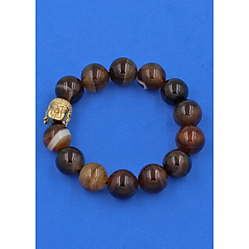 ✨Vòng đeo tay Mã Não Nâu Sọc 14 ly cẩn hạt Phật A Di Đà inox vàng VMNNSNLV14 - hợp mệnh Kim, mệnh Thổ
