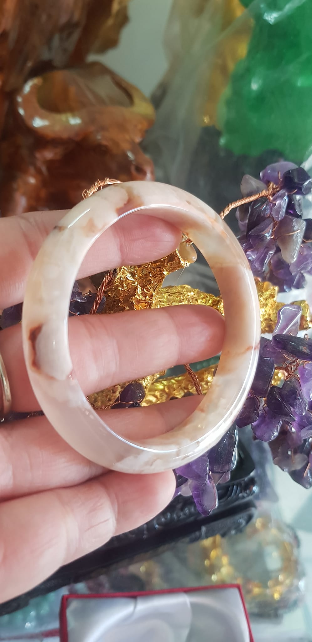 Vòng Thạch Anh Hồng Tự Nhiên Bản Hẹ Mới đẹp Ni 52mm Cao 11mm Dầy 8mm Màu Hồng xinh bóng đẹp Nữ mệnh Hỏa mệnh Thổ tay nhỏ đeo 45kg - 52 kg ạ Vòng