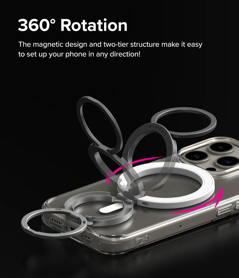 - Vòng hít từ tính RINGKE Smart Ring Magnetic có thể sử dụng đa năng nhiều cách như: giá đỡ điện thoại, móc treo điện thoại trên xe hơi, trợ lực cầm nắm thiết bị tốt hơn chống trơn tuột.