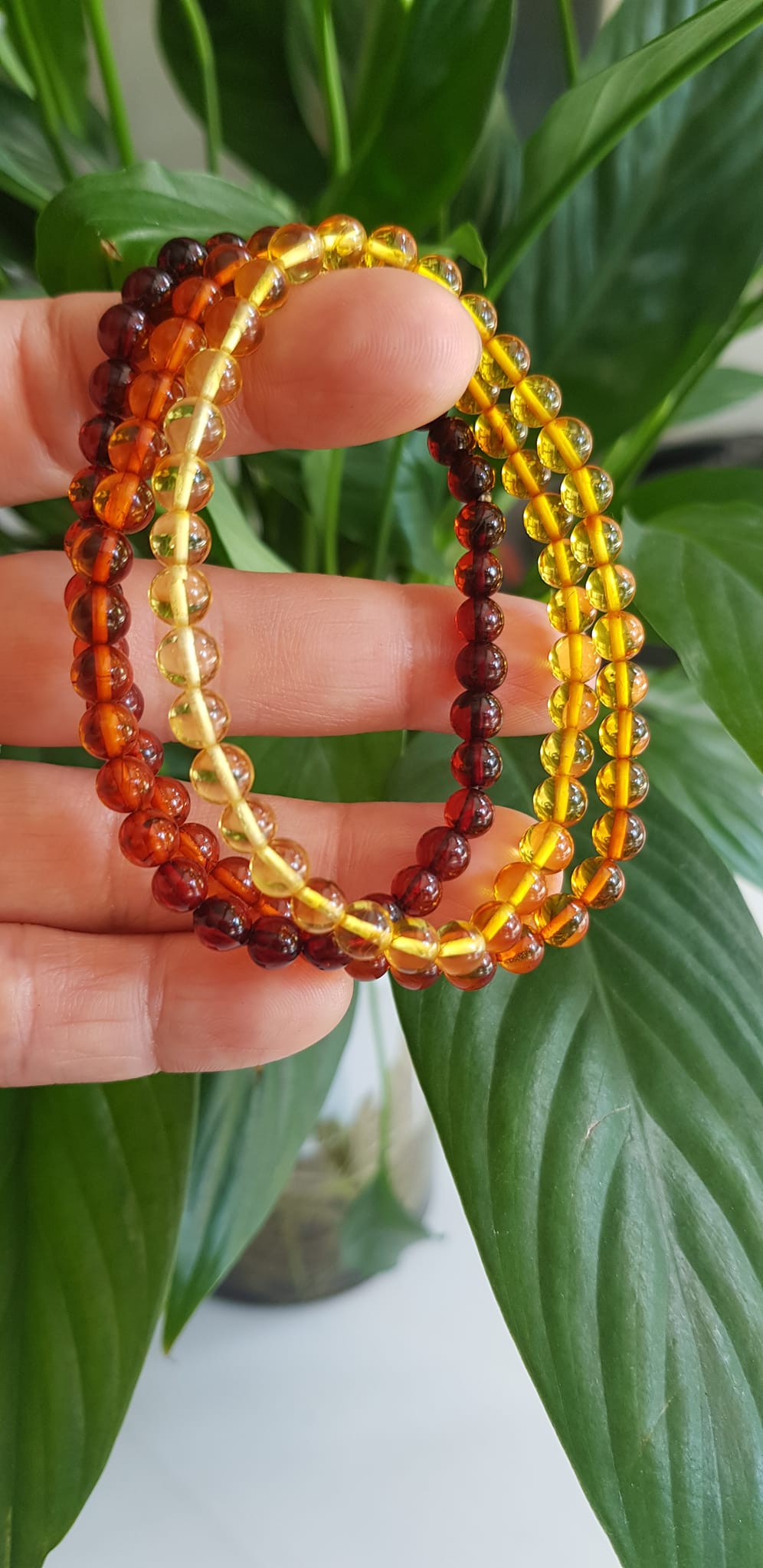 Vòng Hổ Phách tự nhiên đeo quấn tay kiểu 3 vòng Size hạt 5mm 3 màu tam hợp màu vàng anh cam đỏ đậm phối tay các Chị Em Nữ lên tay đeo rất xinh