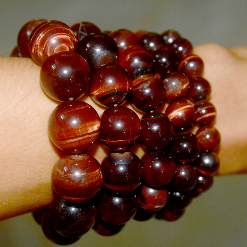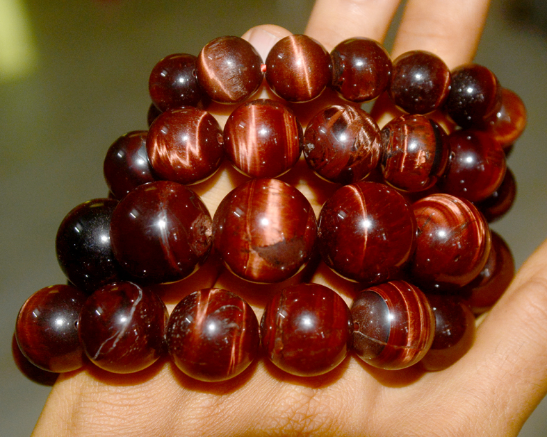 Vòng tay chuỗi đá mắt hổ đỏ -Giống như mắt hổ màu vàng thường thấy,nhưng màu đỏ sẽ cho cảm giác mạnh mẽ hơn.