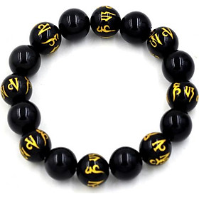 Màu đen , khắc và mạ vàng Phật chú trên hạt chuỗi.